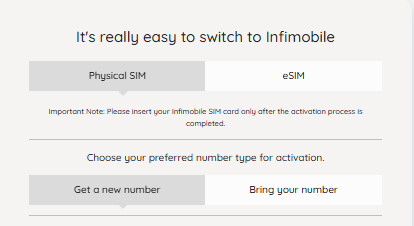 2. Under the activation options, select “Physical SIM.”