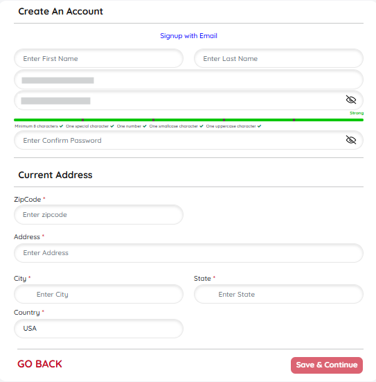 2. Provide your email address and set a password.