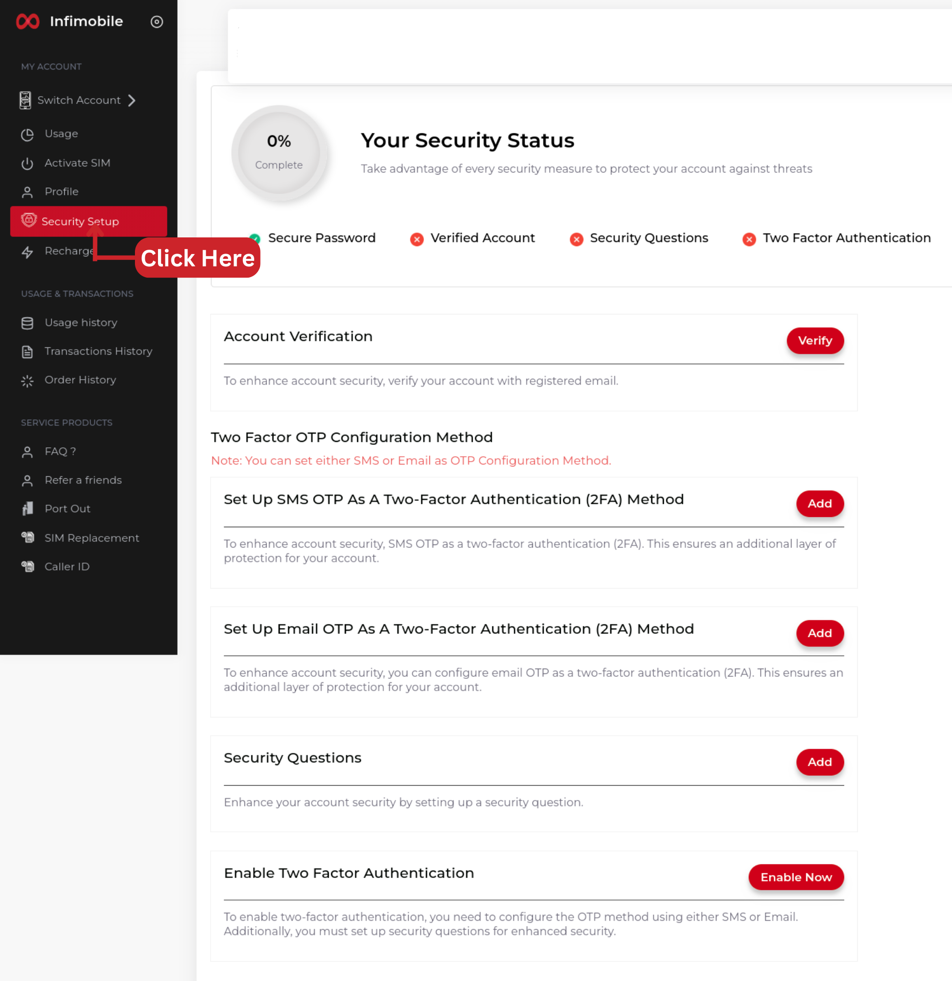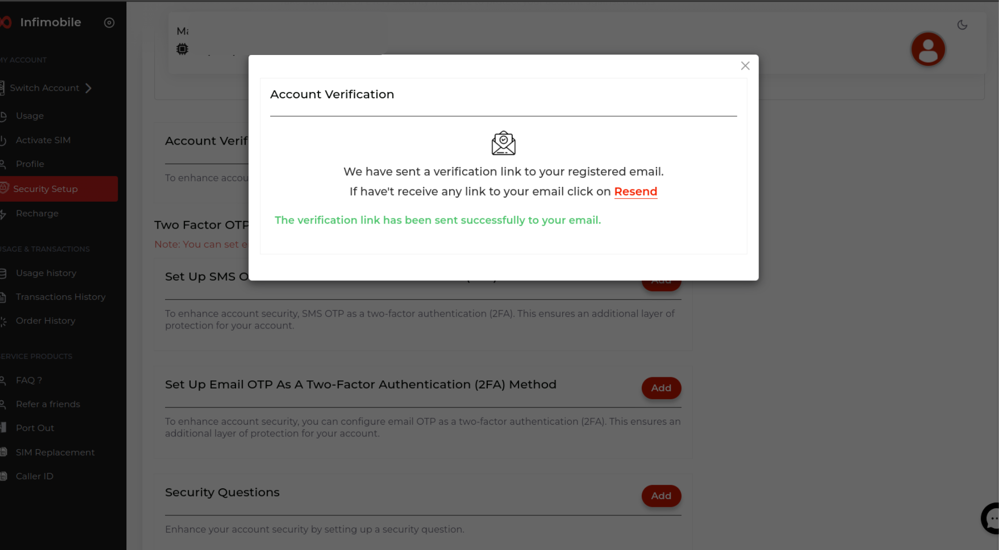To enable two-factor authentication (2FA) for your Infimobile account, follow these simple steps: