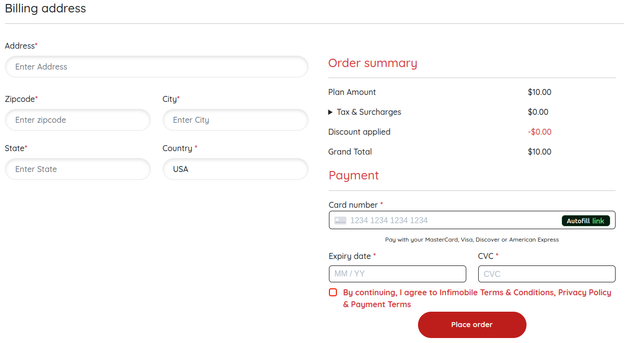 Step 5 :Please provide your billing address and enter your card details to complete the payment process.