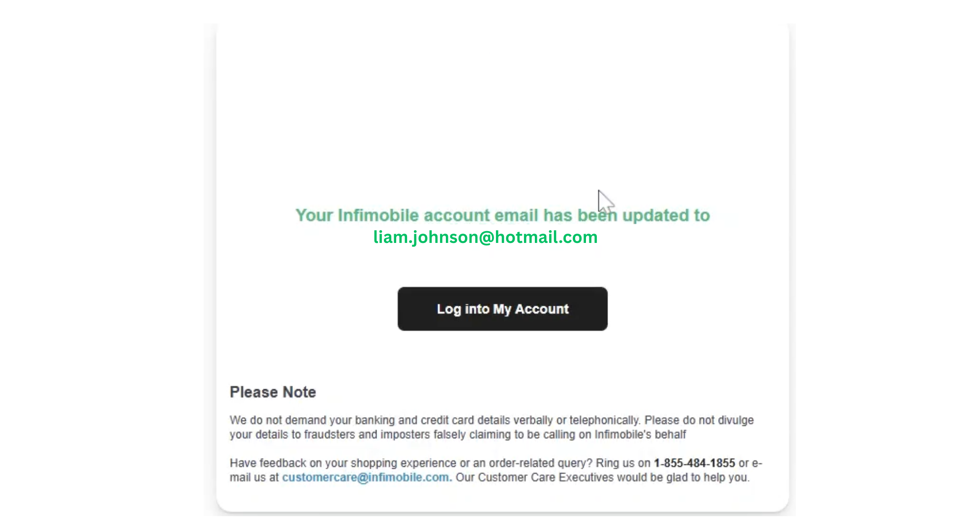 Step 6 : The email has been updated. Please click on My Account, and you will be logged into your Infimobile account.