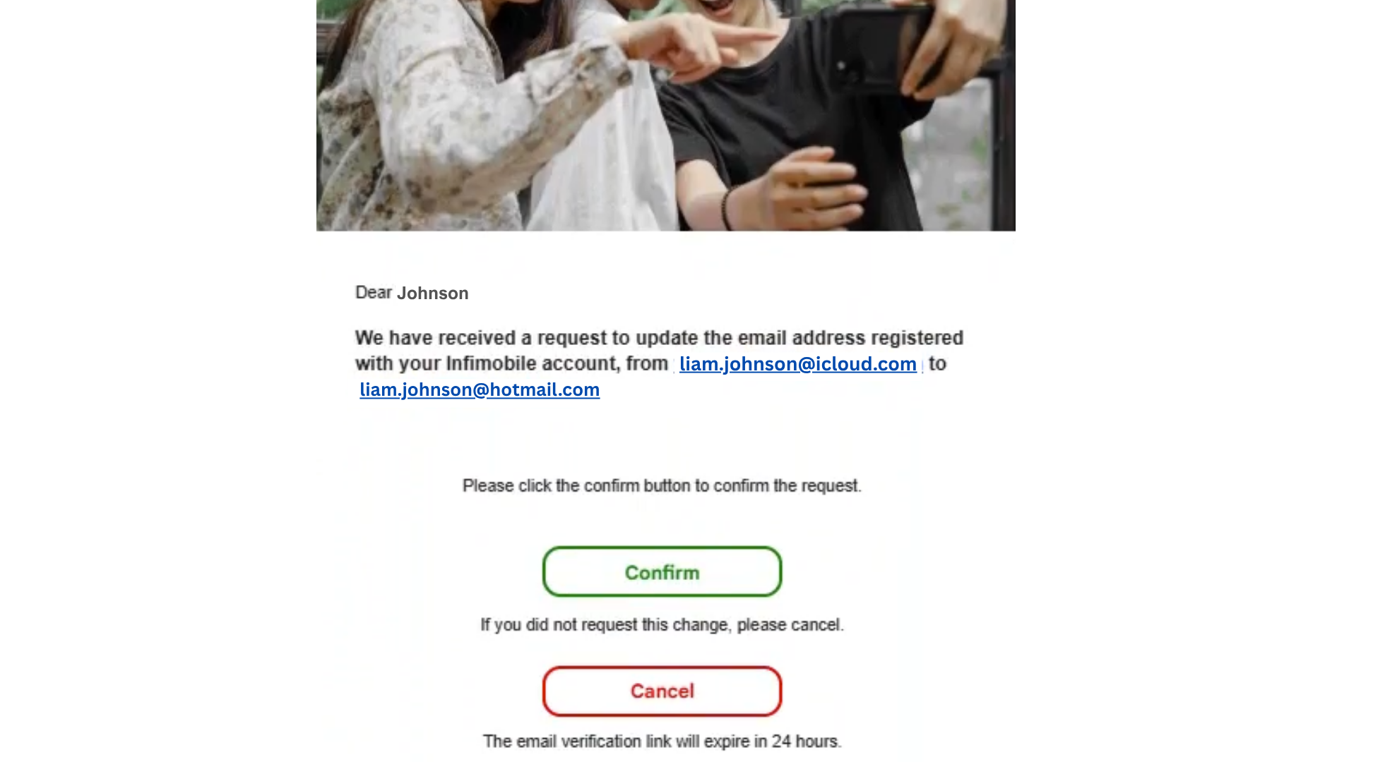 Step 5 : Click "Confirm" in the email to process the request, and your email address will be updated.
